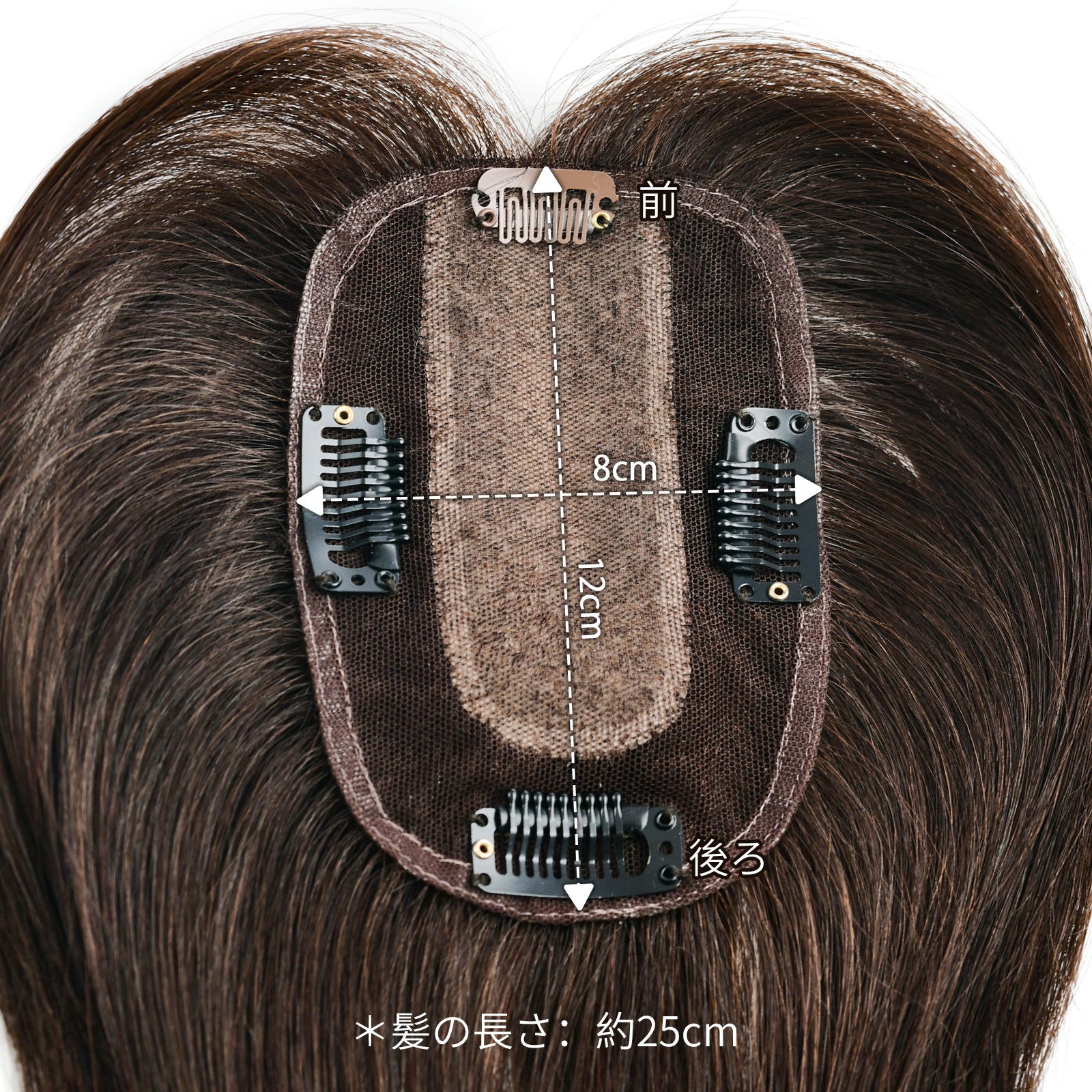 人毛ミックス 部分ウィッグ 8*12cm 25cm ヘアピース 頭頂部 白髪かくし 部分ウィッグ かつら 女性 つむじ 自然 総手植え ポイントウィッグ ふんわり 薄毛対策